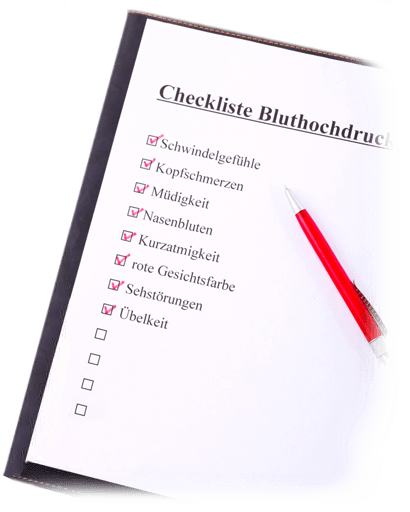 Werden wiederholt Blutdruckwerte von 140 mmHG systolisch und 90 mmHG diastolisch und höher gemessen, liegt ein Bluthochdruck (arterielle Hypertonie) vor (mmHG = Maßeinheit zur Messung des Blutdrucks).
